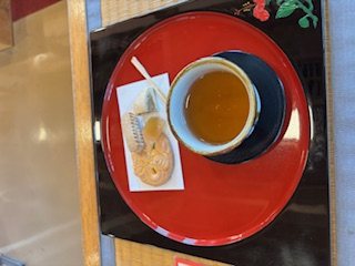 散歩の途中で寄ったぜんざいを雹くんと一緒に。