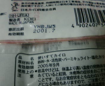 冬コミ(または小旅行)に使うバックなのですが、ずっと入れっぱなしにしていたカイロを改めて今日、行きの電車で取り出して眺めていたら、使用期限が……。