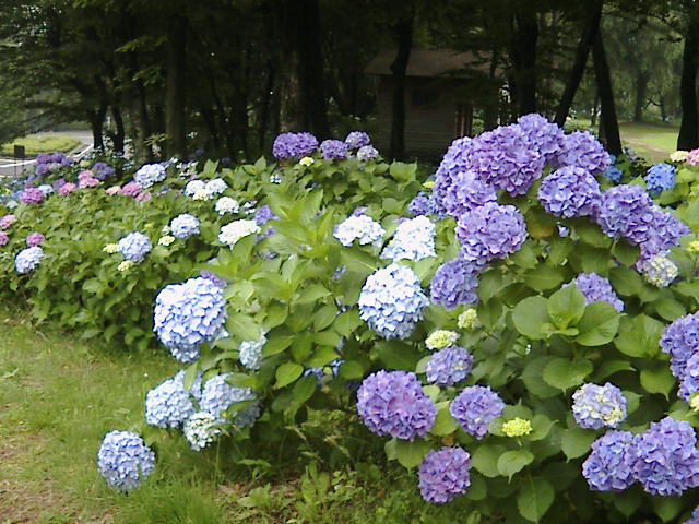 近所の温泉へ行き、アジサイが綺麗な公園へ。