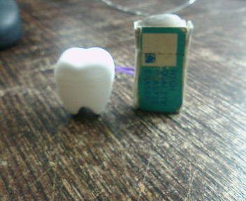 上の写真は抜いた歯を記念にもらってきて、入れてもらった入れ物です。決して私の歯ではないので、あしからず(でかすぎだって)。比較対象は使い古されたMY消しゴムです。