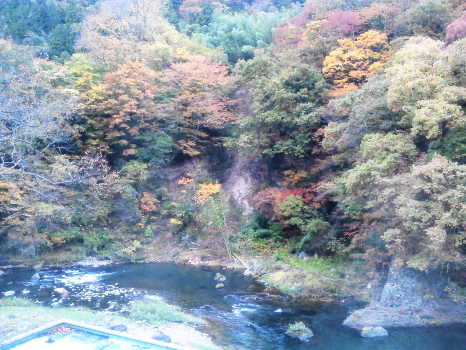 宿からの風景で、下に白石川が流れている、静かな旅館でした。